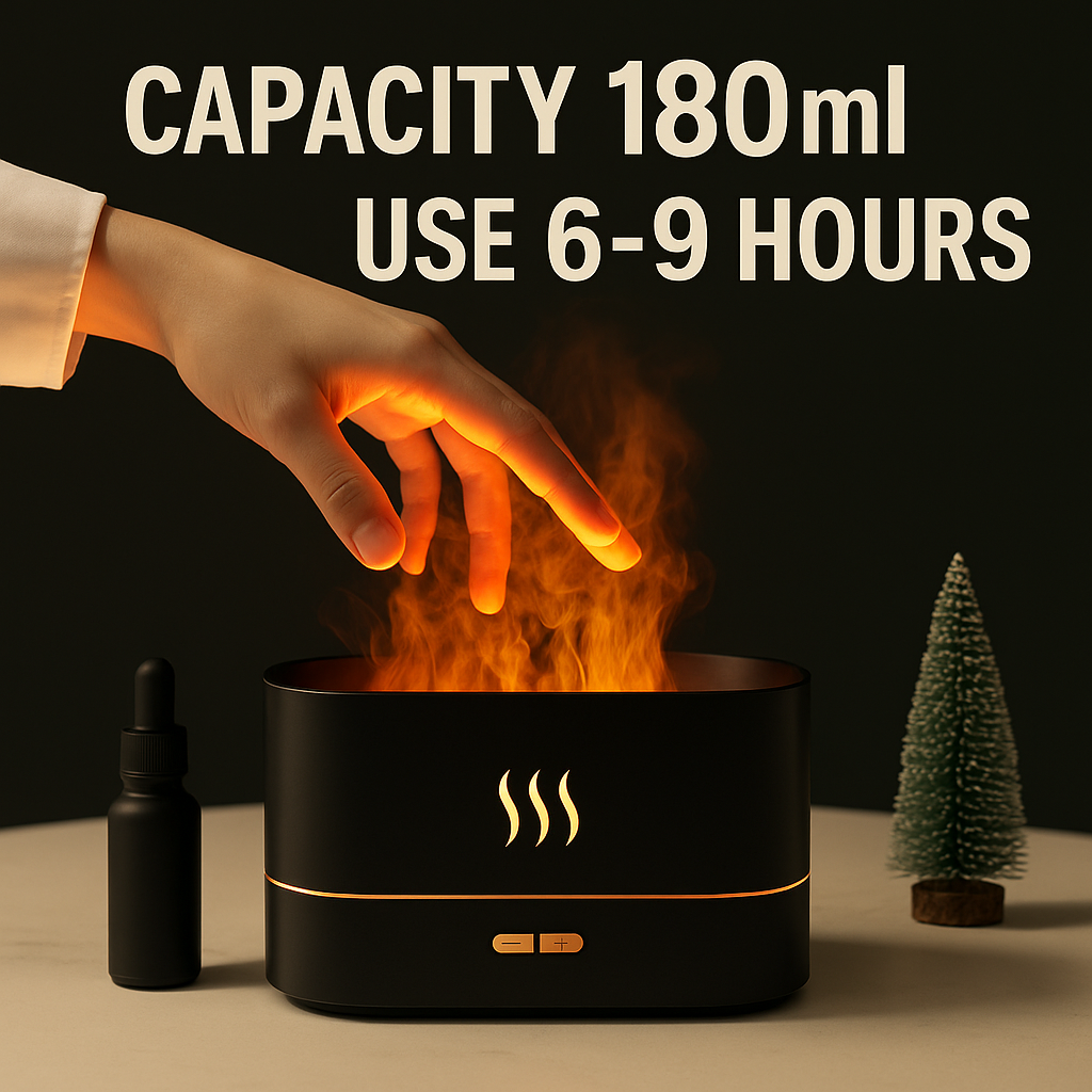 Gracias a su capacidad de 180ml, el difusor garantiza un funcionamiento continuo de 6 a 9 horas. Esto significa que puedes disfrutar de una noche completa de sueño ininterrumpido y despertar con un ambiente perfectamente aromatizado, sin tener que rellenarlo.